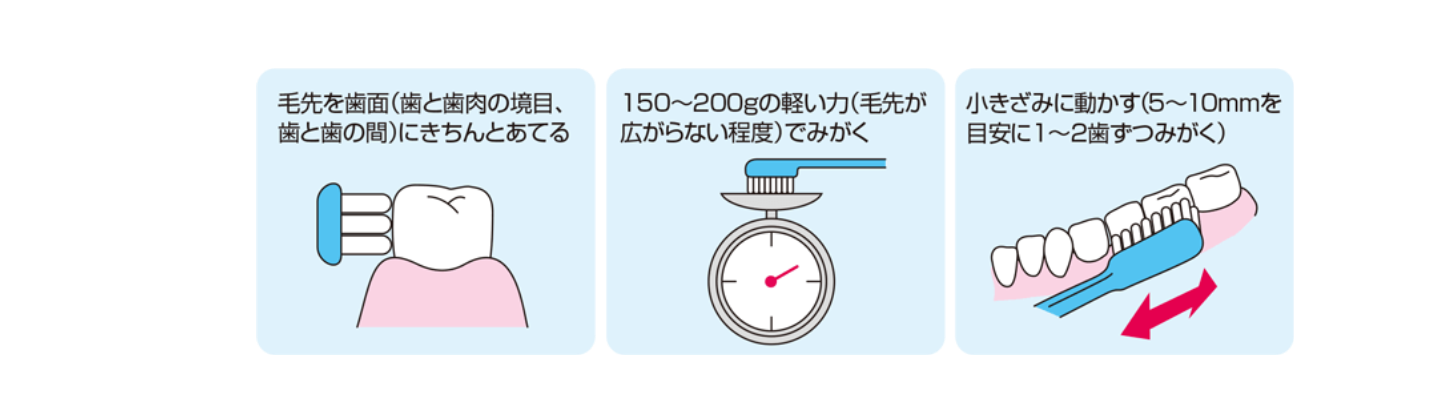『セルフケア』とは、適切な歯ブラシを使って、毎日(なるべく毎食後)すみずみまできれいに歯をみがくことです。