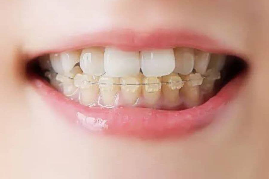 笑ったときに人目につきやすい上顎が裏側矯正(舌側矯正)で行えるため、審美性は高めです。下顎は表側に装置がつきますが、下唇が下がりすぎない方であればそれほど目立ちません。接客業の方にはとくにおすすめの方法です。